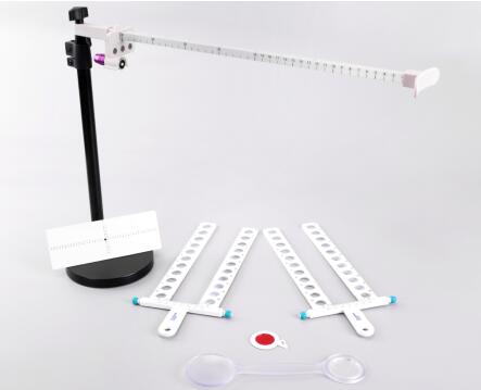 4、雙眼加+1.00D的球鏡,詢問被檢者燈、線關(guān)系,再推動(dòng)排鏡至燈、線重合,兩個(gè)數(shù)值的差即為AC/A值。