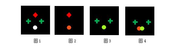 1、如果被檢查者報告四個燈,有正常的融合(圖1) ,記錄為幾紅幾綠。
